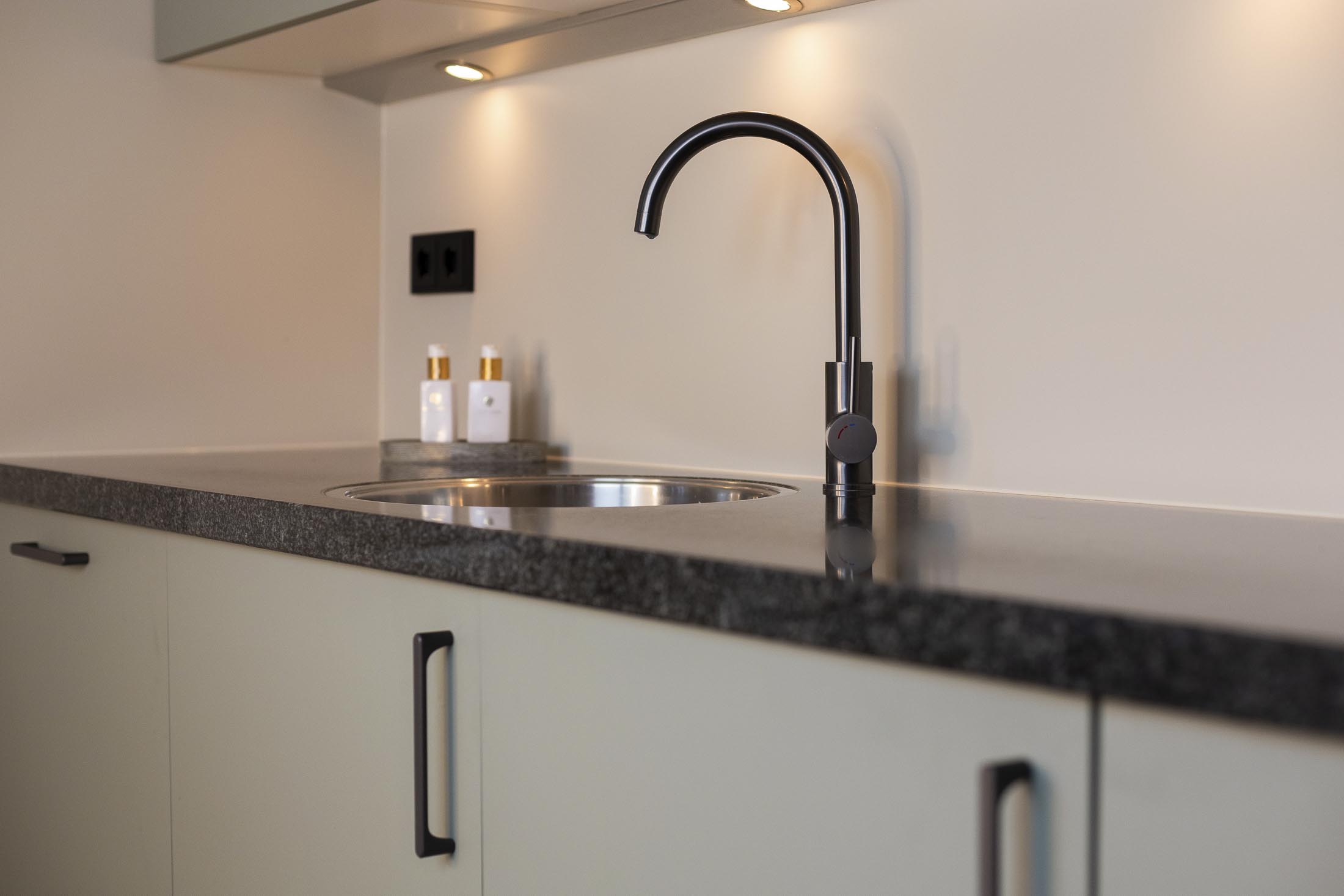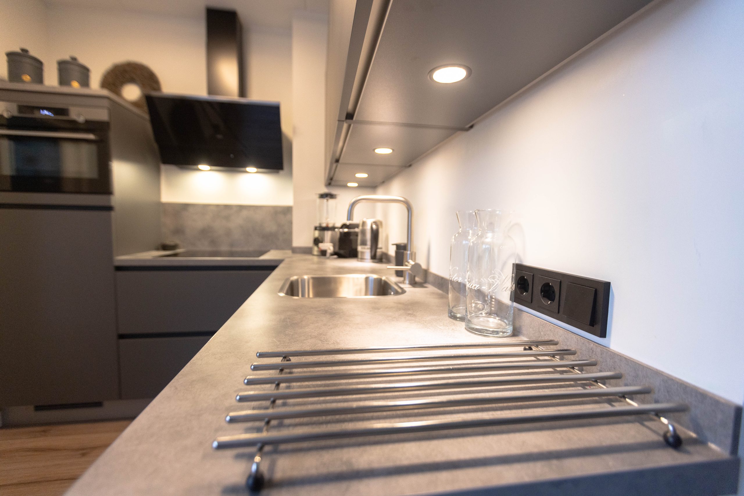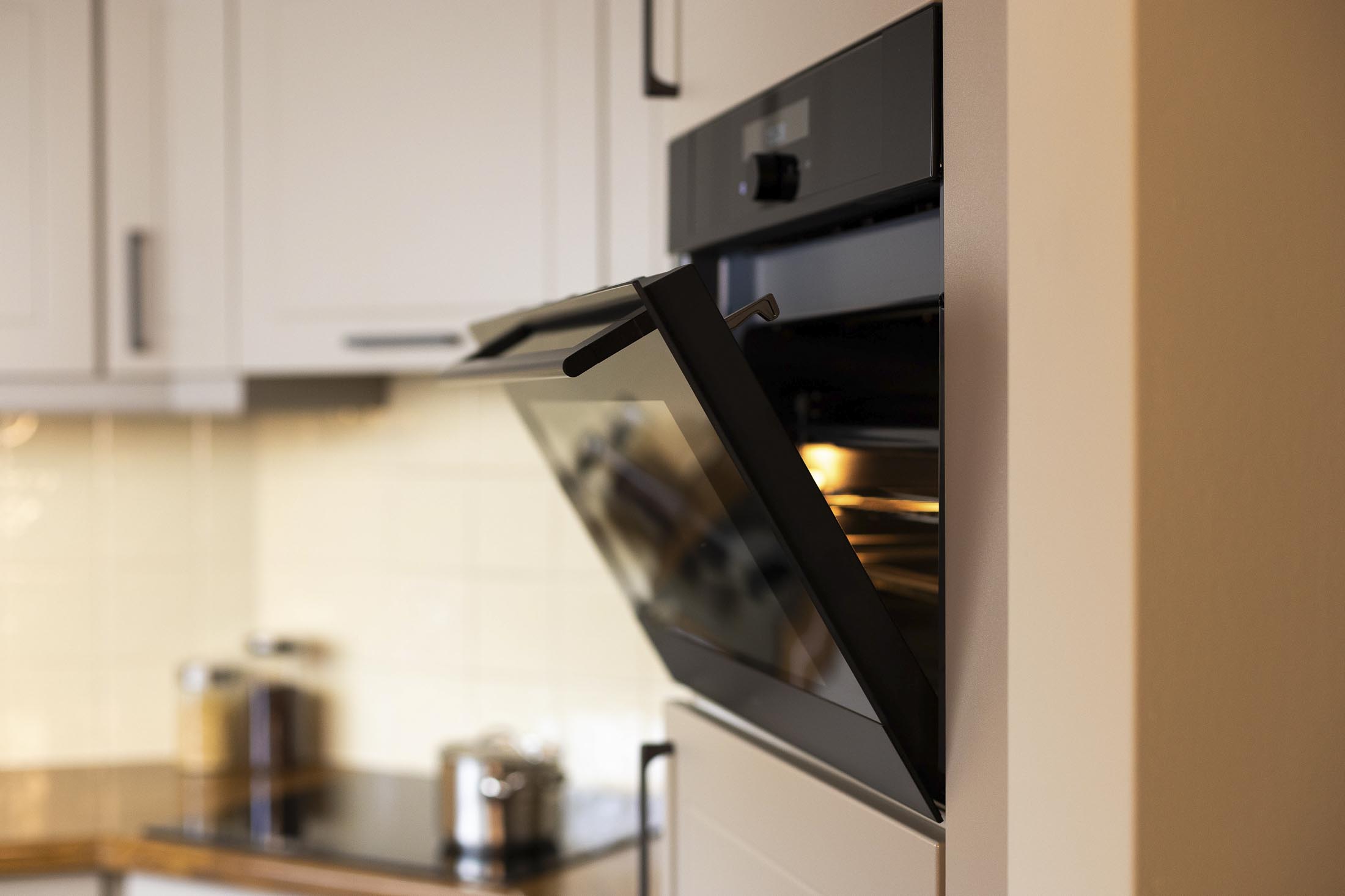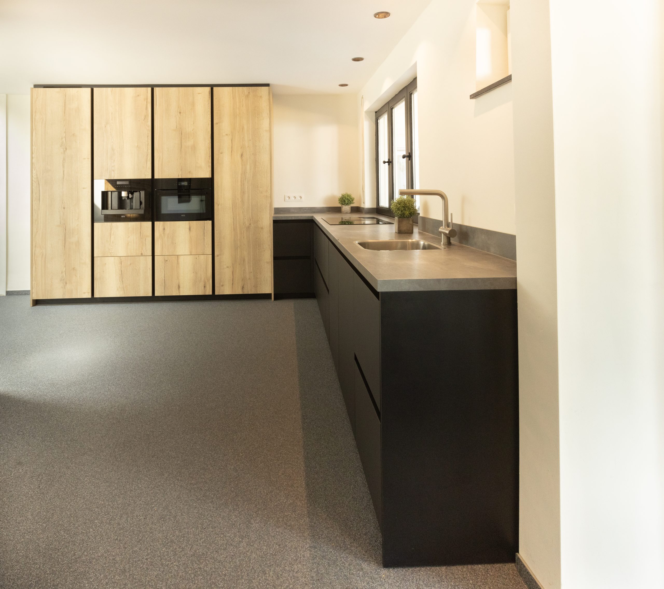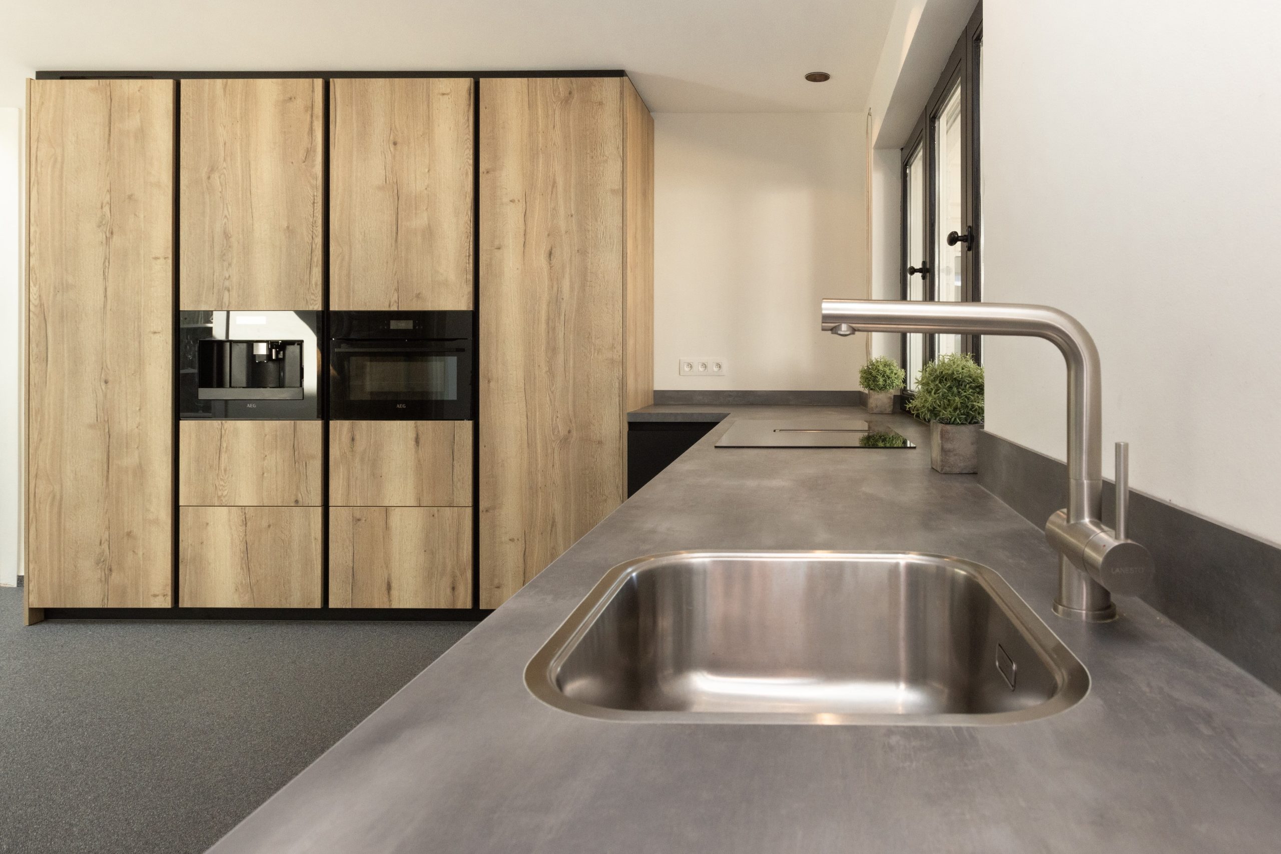 Ook hebben we praktische verbeteringen aangebracht, zoals een nieuwe lade onder de oven, een nieuwe plint, spoelbak en kraan. Tot slot is de keuken uitgerust met nieuwe apparatuur: een oven-combi, koelkast, kookplaat en afzuigkap.